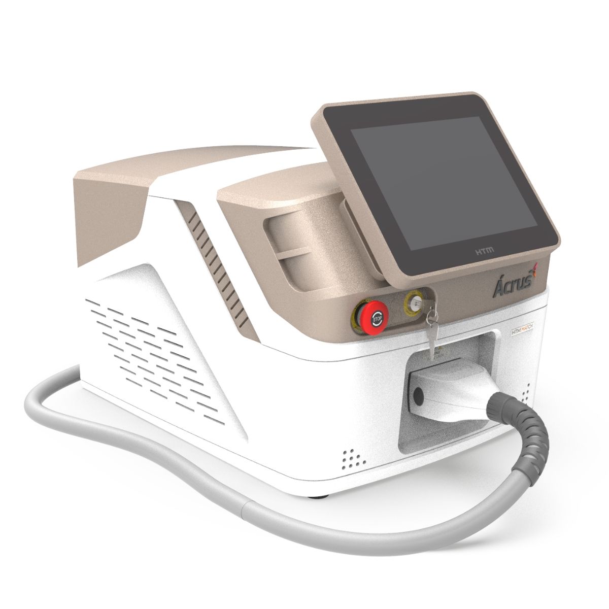 O equipamento ÁCRUS é o mais novo lançamento da HTM, sendo um aplicador TRIPLEWAVE com emissão simultânea do Laser Alexandrite (755nm), Diodo (808nm) e ND-Yag (1064nm).